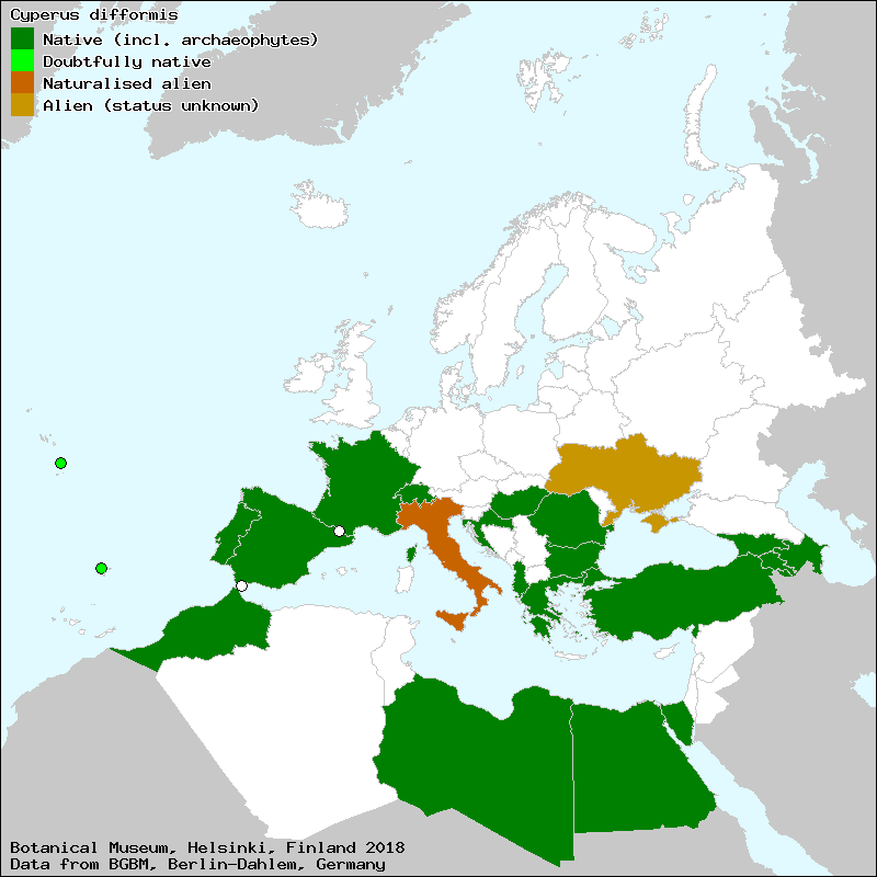 Source: Jiménez-Mejías, P. & Luceño, M. (2011): Cyperaceae. – In: Euro+Med Plantbase - the information resource for Euro-Mediterranean plant diversity.