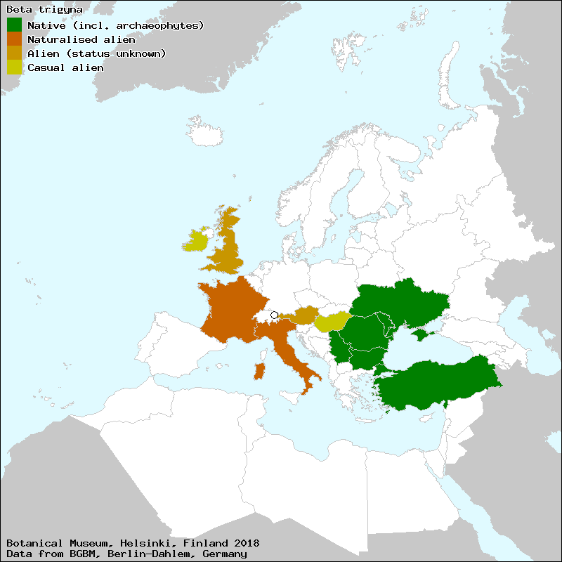 Betterave à trois stigmates (French), Beet root (English), drvenasta blitva (Croat), Kir pazisi (Turkish), Mangold (German), Rěpa trojblizná (Czech), Sfeclă sălbatică (Roumanian), Сфеклэ трижинэ (Moldovian), Тристълбчесто цвекло (Bulgarian)[Credits] |