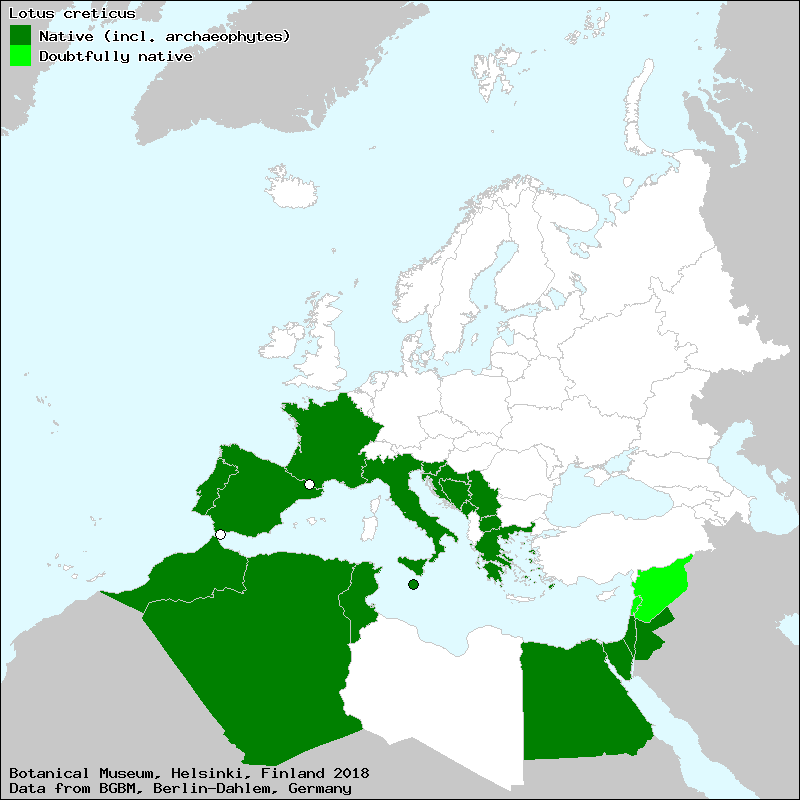 aubercoch (Majorcan), bolina de la vega (Spanish, Castillian), cornichão-das-areias (Portuguese), cuernecillo de mar (Spanish, Castillian), lot de Creta (Catalan), lot de Creta (Valencian), lot de platja (Catalan), loteiro (Portuguese), loteiro de Creta (Portuguese), trebolina (Spanish, Castillian), tres en rama (Portuguese), trevo de Creta (Portuguese), trevo silvestre (Portuguese), trevo-de-Creta (Portuguese)[Credits] |