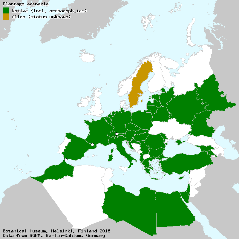 Marhold, K. (2011+): Plantago. – In: Euro+Med Plantbase - the information resource for Euro-Mediterranean plant diversity. This work is licensed under a Creative Commons Attribution-ShareAlike 3.0 Unported license (CC-By-SA-3.0 Unported).