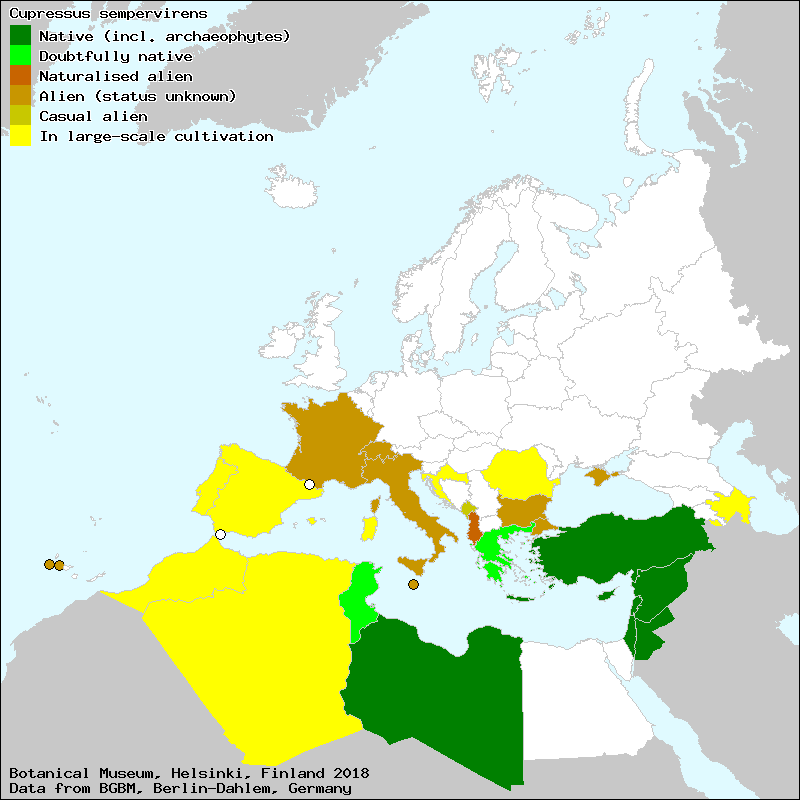 בְּרוֹשׁ מָצוּי (Israel (Hebrew)), acipré (Spanish, Castillian), aciprés (Galician), aciprés (Spanish, Castillian), acipreste (Galician), acypreste (Portuguese), alciprés (Galician), alciprés (Portuguese), alciprés (Spanish, Castillian), alcipreste (Galician), alcipreste (Portuguese), alcipreste (Spanish, Castillian), alsiprés (Spanish, Castillian), altzifre arrunt (Euskera), altzifre arrunta (Euskera), alzifre (Euskera), árbol de los cementerios (Aragonese), arciprés (Spanish, Castillian), arcipreste (Portuguese), arizónica (Spanish, Castillian), arsiprés (Spanish, Castillian), aziprés (Aragonese), bolas (gálbulas) (Spanish, Castillian), calaveras (gálbulas) (Spanish, Castillian), cap de mort (Catalan), cedro bastardo (Portuguese), ciprer (Catalan), ciprer (Majorcan), ciprer (Valencian), ciprés (Catalan), ciprés (Spanish, Castillian), ciprés común (Spanish, Castillian), ciprés de Levante (Spanish, Castillian), ciprés hembra (Spanish, Castillian), ciprés macho (Spanish, Castillian), ciprés real (Spanish, Castillian), cipresa (Euskera), cipreste (Galician), cipreste (Portuguese), cipreste (Spanish, Castillian), cipreste-comum (Portuguese), cipreste-dos-cemitérios (Portuguese), closca de mort (Catalan), cuprer (Catalan), cyparisso (Portuguese), cypreste (Portuguese), gálbula (Spanish, Castillian), gau-arbola (Euskera), macarotes (gálbulas) (Spanish, Castillian), necostá (Euskera), nekosta (Euskera), nekosta arrunt (Euskera), nekosta arrunta (Euskera), nuez de ciprés (Spanish, Castillian), pelotas (gálbulas) (Spanish, Castillian), piña de ciprés (Spanish, Castillian), pino aciprés (Spanish, Castillian), pino ciprés (Spanish, Castillian), pinyetes (gálbulas) (Valencian), rama (Spanish, Castillian), sipré (Valencian), xifrer (Catalan), xipré (Catalan), xiprer (Catalan), xiprer (Majorcan), xiprer (Valencian), xiprera (Valencian), ziperres (Euskera), Κυπαρίσσι (Greek), Τσυπαρίσσιν (Greek)[Credits] |