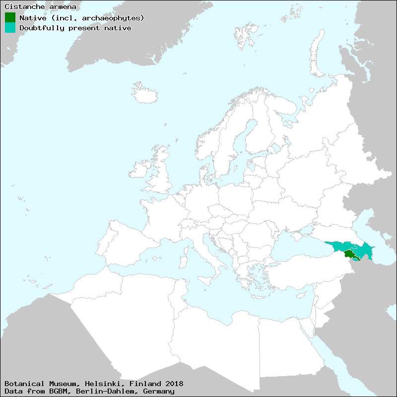 Domina, G. & Raab-Straube, E. von (2010+): Cistanche. – In: Euro+Med Plantbase - the information resource for Euro-Mediterranean plant diversity. This work is licensed under a Creative Commons Attribution-ShareAlike 3.0 Unported license (CC-By-SA-3.0 Unported).