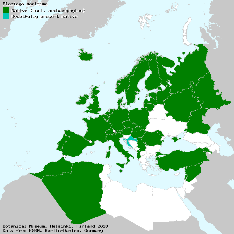Marhold, K. (2011+): Plantago. – In: Euro+Med Plantbase - the information resource for Euro-Mediterranean plant diversity. This work is licensed under a Creative Commons Attribution-ShareAlike 3.0 Unported license (CC-By-SA-3.0 Unported).