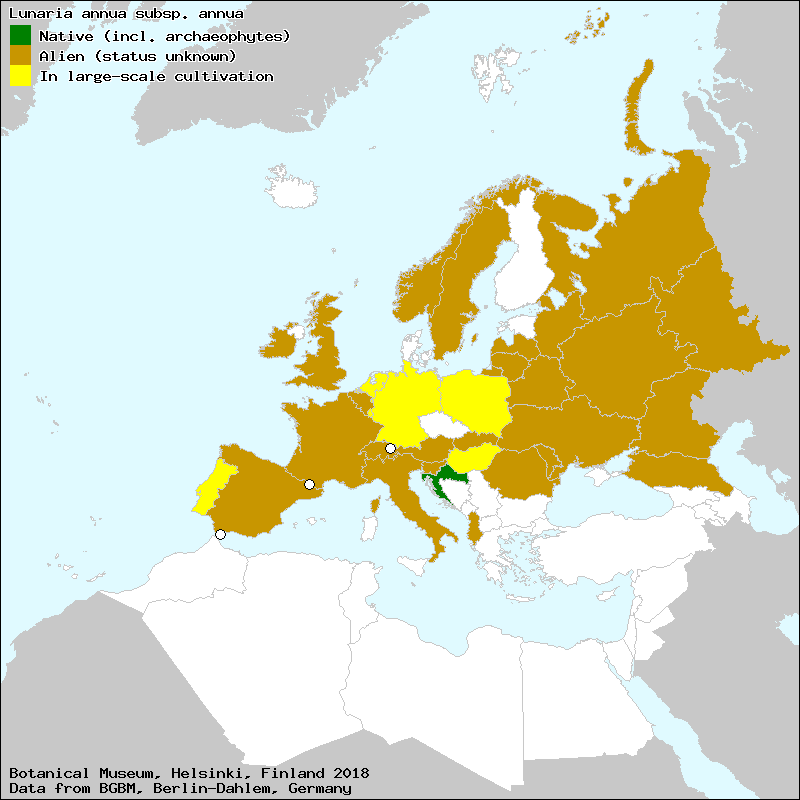 cetim branco (Portuguese), dinheiro-do-pápa (Portuguese), flor de lluna (Catalan), flor o hierba de plata (Spanish, Castillian), herba de plata (Catalan), herba do nacre (Galician), herba do Papa (Galician), hierba de nácar (Spanish, Castillian), hoja de plata (Spanish, Castillian), llunària (Catalan), lunaria (Spanish, Castillian), medalha-do-pápa (Portuguese), pesetas (Spanish, Castillian), pessetes (Catalan), setí (Catalan), setins (Catalan)[Credits] |