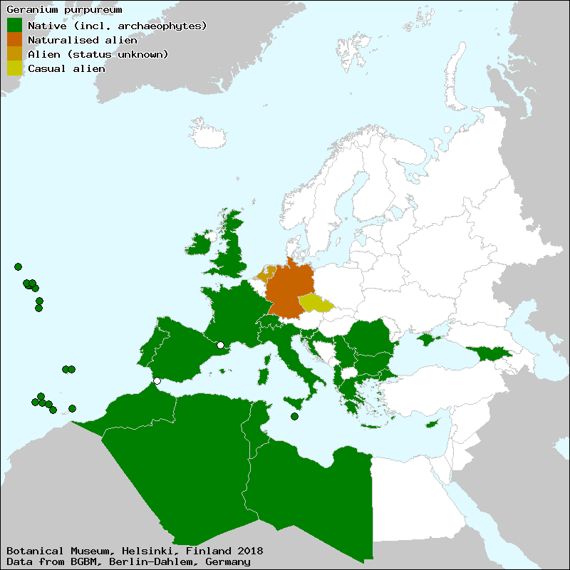 Aedo, C. (2009): Geranium. – In: Aedo, C., Estébanez, B. & Navarro, C. (ed.); with contributions from Raab-Straube, E. von & Parolly, G.: Geraniaceae. Euro+Med Plantbase - the information resource for Euro-Mediterranean plant diversity. This work is licensed under a Creative Commons Attribution-ShareAlike 3.0 Unported license (CC-By-SA-3.0 Unported).
