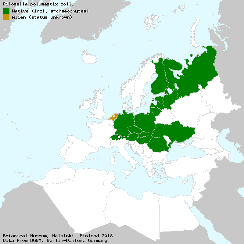 Bräutigam, S. & Greuter, W. (2007-2009): Pilosella. – In: Greuter, W. & Raab-Straube, E. von (ed.): Compositae. Euro+Med Plantbase - the information resource for Euro-Mediterranean plant diversity. This work is licensed under a Creative Commons Attribution-ShareAlike 3.0 Unported license (CC-By-SA-3.0 Unported).