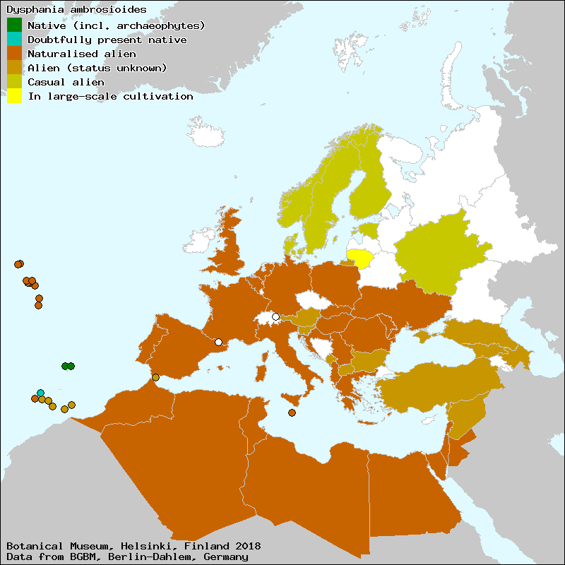 Chénopode fausse ambroisie (French), Echter Erdbeerspinat (German), Thé du Mexique (French), כַּף-אֲוָז רֵיחָנִית (Israel (Hebrew)), agea (Spanish, Castillian), ajasote (Spanish, Castillian), Ambroisine (French), ambrosía de Mexico (Portuguese), ambrósia-do-México (Galician), ambrósia-do-méxico (Portuguese), apasote (Spanish, Castillian), apazote (Spanish, Castillian), biengranada (Spanish, Castillian), bleits (Catalan), blet (Catalan), blet americà (Valencian), blets (Catalan), chá do México (Portuguese), chá-do-México (Galician), chá-do-México (Portuguese), chiñurri belarra (Euskera), chiñurri-belarra (Euskera), citronmålla (Swedish), cjelolista loboda (Croat), Dišeča metlika (Slovene), epazote (Spanish, Castillian), erva formigueira (Portuguese), erva-formiga (Galician), erva-formiga (Portuguese), erva-formigueira (Galician), erva-formigueira (Portuguese), espasothl (Spanish, Castillian), formigueira (Galician), hagea (Spanish, Castillian), harba da eixada (Galician), herba da aixada (Galician), herba da eixada (Galician), herba da illarga (Galician), herba da illarga (Portuguese), herba dels leprosos (Catalan), herba dels llebrosos (Catalan), herba do té (Galician), herba formigueira (Galician), herba formiguera (Catalan), herba-do-té (Galician), herba-do-té (Portuguese), herva da hijada (Galician), herva formigueira (Portuguese), hierba ambrosía (Spanish, Castillian), hierba hormiguera (Spanish, Castillian), hierba santa (Spanish, Castillian), hormigosa (Spanish, Castillian), hormiguera (Spanish, Castillian), inurri belarra (Euskera), inurri-belar (Euskera), Komosa piżmowa (Polish), madroa (Galician), merlík vonný (Czech), Mexikanischer Tee (German), Minueri si pellin deti (Albanian), Mirha-libatop (Hungarian), mrlík celistvolistý (Slovak), mrlík voňavý (Slovak), pasote (Spanish, Castillian), pasotle (Portuguese), pazote (Spanish, Castillian), poleo (Spanish, Castillian), pozote (Spanish, Castillian), quenopodio (Portuguese), quenopódio (Portuguese), sitronmelde (Norwegian), Sitruunasavikka (Finnish), Tămâița (Roumanian), té (Aragonese), té (Catalan), té (Galician), té (Spanish, Castillian), te bord (Catalan), te bord (Majorcan), te bord (Valencian), te bort (Catalan), te bort (Majorcan), te d’Espanya (Catalan), te d´Espanya (Catalan), té de España (Galician), te de España (Spanish, Castillian), té de España (Spanish, Castillian), té de Espanya (Catalan), té de Europa (Spanish, Castillian), te de Mejico (Spanish, Castillian), te de Méjico (Spanish, Castillian), té de Méjico (Spanish, Castillian), te de Mèxic (Catalan), te de México (Spanish, Castillian), te de Montserrat (Catalan), te de Nueva España (Spanish, Castillian), té de Nueva España (Spanish, Castillian), te español (Spanish, Castillian), té español (Spanish, Castillian), te fals (Catalan), té fals (Catalan), te fals (Valencian), té fals (Valencian), té hormigoso (Spanish, Castillian), té rico (Spanish, Castillian), Tè sardu (Sardinian), té silvestre (Spanish, Castillian), té verde (Spanish, Castillian), teó (Galician), Thé vert (French), txiñurri belarra (Euskera), txiñurri-bedarr (Euskera), usaidela (Galician), usaidela (Portuguese), Vellugtende Gåsefod (Danish), yerba hormiguera (Spanish, Castillian), yerba santa (Spanish, Castillian), Χηνοπόδιον το αμβροσιοειδές (Greek), Миризлива куча лобода (Bulgarian), Тоюг тәрә (Azerbaijani), Штир-Сэлбатик тэмыйос (Moldovian), דיספניה ריחנית (Israel (Hebrew))[Credits] |