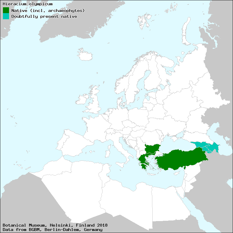 Included taxa: Hieracium olympicum Boiss. subsp. olympicum
