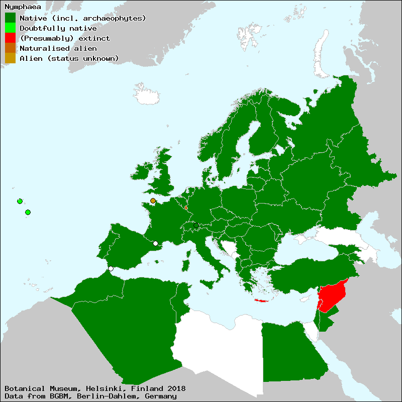 Source: Uotila, P. (2009): Nymphaeaceae. – In: Euro+Med Plantbase - the information resource for Euro-Mediterranean plant diversity.