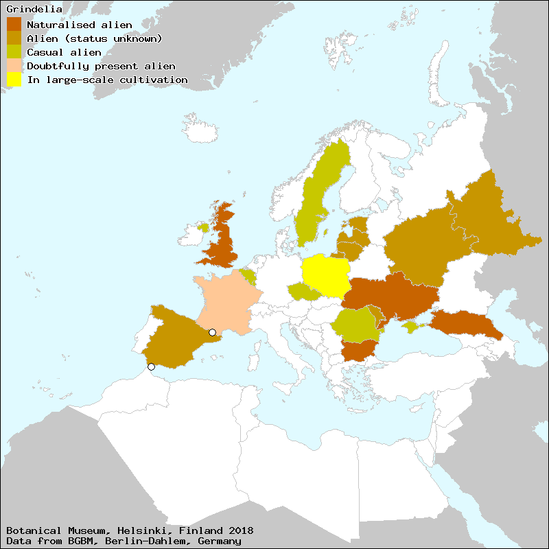 Grindelie (Czech), Grindēlija (Latvian), Grindelija (Lithuanian), Grindelior (Swedish), Vaiguvaak (Estonian), Гринделие (Moldovian), Гринделія (Ukraine), Zaplevanka (Czech)[Credits] |