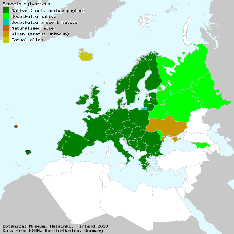 Bergkorsört (Swedish), Bergsvineblom (Norwegian), Boskruiskruid (Dutch), Gozdni grint (Slovene), Heath Groundsel (English), Kalliovillakko (Finnish), Mets-ristirohi (Estonian), Meža krustaine (Latvian), Miškinė žilė (Lithuanian), Senecione delle selve (Italian), Séneçon des bois (French), Séneçon des forêts (French), Skov-Brandbæger (Danish), Starček lesný (Slovak), Starzec leśny (Polish), Šumski dragušac (Croat), Šumski kostriš (Croat), Šumski staračac (Croat), Wald-Greiskraut (German), Wald-Kreuzkraut (German), Горски спореж (Bulgarian), Жовтозiлля лiсове (Ukraine), Крестовник лесной (Russian), cálcimo (Portuguese), casamelos (Galician), cásimo (Galician)[Credits] |