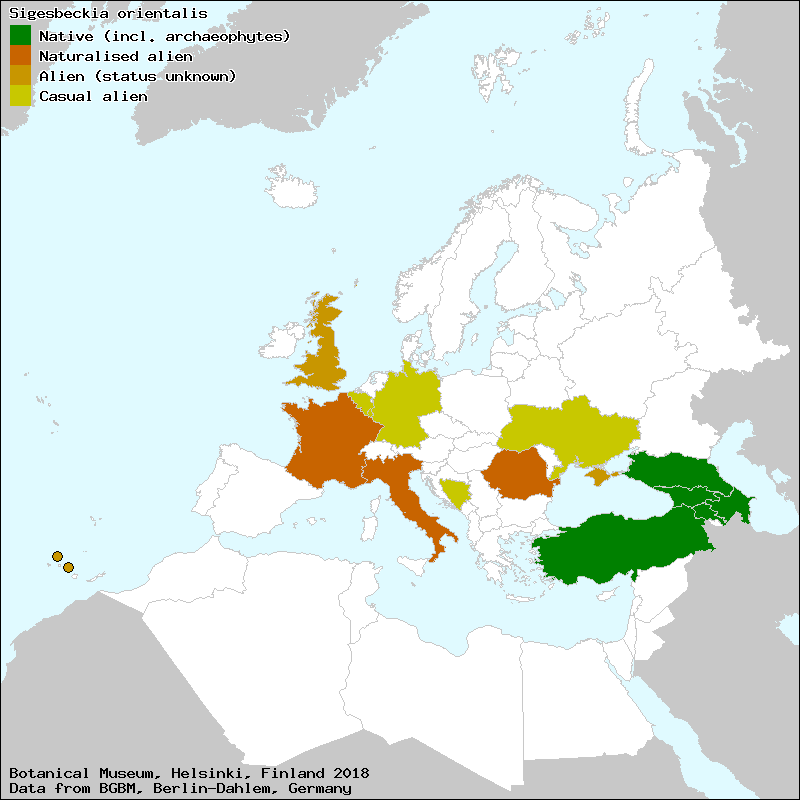 Common names: Siegesbeckia (Italian), Сигезбекiя схiдна (Ukraine), Сигезбекия восточная (Russian), Սիգեսբեկիա արևելյան (Armenian)[Credits]