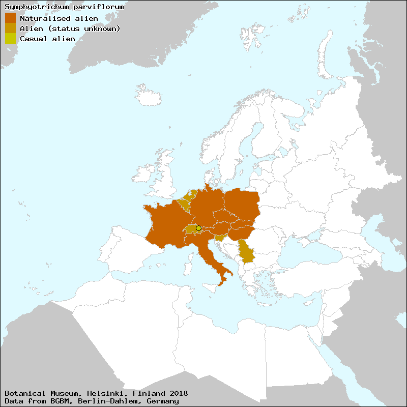 Astra malokvetá (Slovak), Hvězdnice malokvětá (Czech), Kleine aster (Dutch), Tradescant-Aster (German)[Credits] |