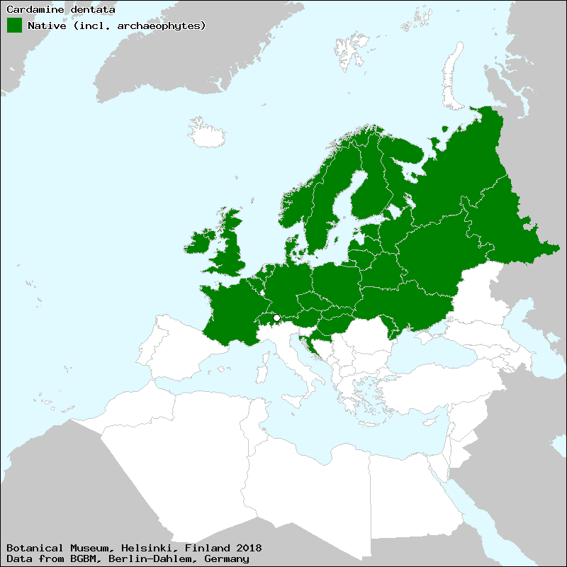 Dantytoji kartenė (Lithuanian), Hambuline jürilill (Estonian), Zobainā ķērsa (Latvian), Блатна горва (Bulgarian), Жеруха зубчаста (Ukraine), Сердечник зубчатый (Russian)[Credits] |