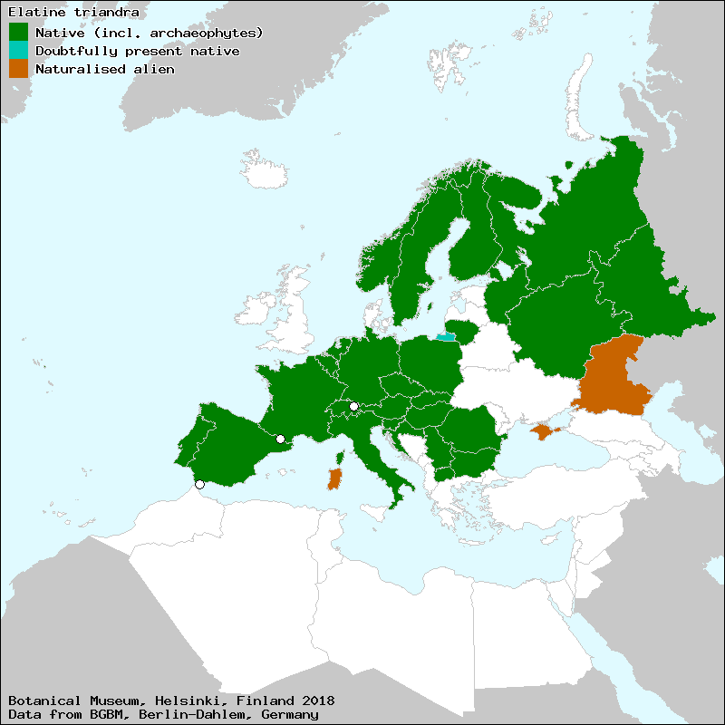 Source: Uotila, P. (2009): Elatinaceae. – In: Euro+Med Plantbase - the information resource for Euro-Mediterranean plant diversity.