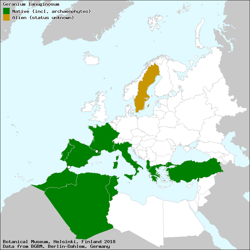 Aedo, C. (2009): Geranium. – In: Aedo, C., Estébanez, B. & Navarro, C. (ed.); with contributions from Raab-Straube, E. von & Parolly, G.: Geraniaceae. Euro+Med Plantbase - the information resource for Euro-Mediterranean plant diversity. This work is licensed under a Creative Commons Attribution-ShareAlike 3.0 Unported license (CC-By-SA-3.0 Unported).