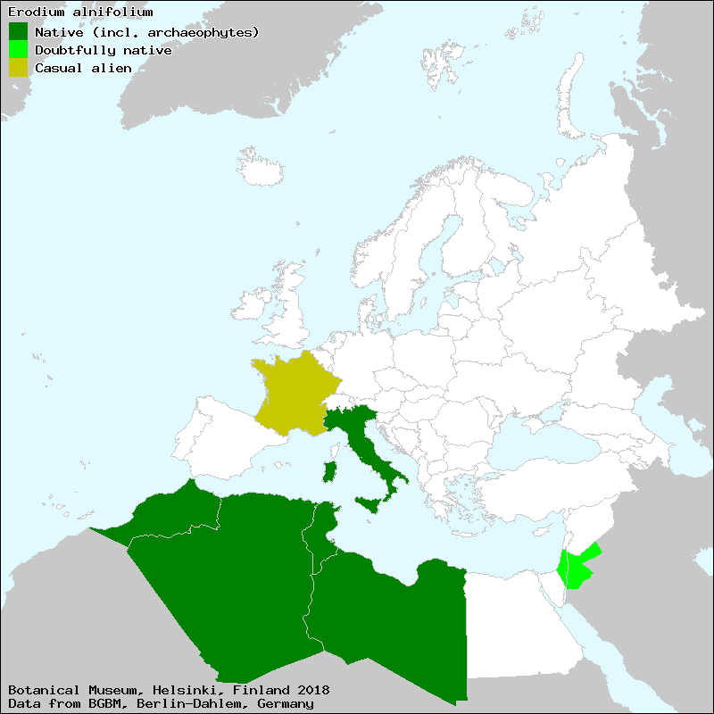 Aldasoro, J., Sáez, L. & Navarro, C. (2009): Erodium.-– In: Aedo, C., Estébanez, B. & Navarro, C. (ed.); with contributions from Raab-Straube, E. von & Parolly, G.: Geraniaceae. Euro+Med Plantbase - the information resource for Euro-Mediterranean plant diversity. This work is licensed under a Creative Commons Attribution-ShareAlike 3.0 Unported license (CC-By-SA-3.0 Unported).