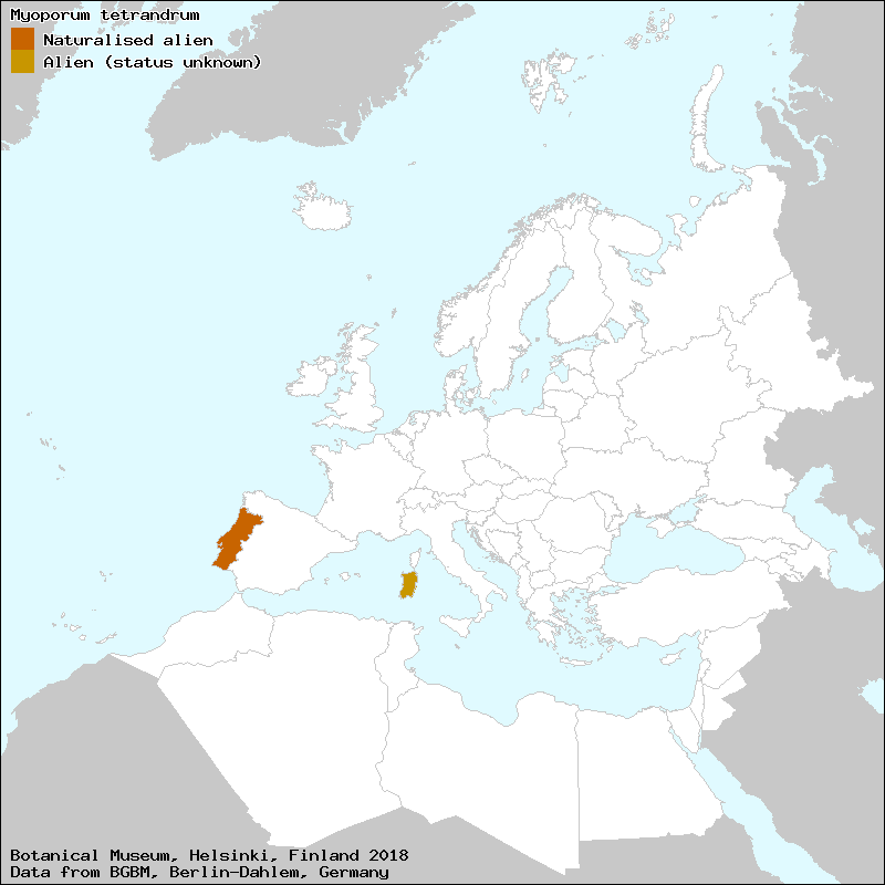 Raab-Straube, E. von (2017+): Myoporum. – In: Euro+Med Plantbase - the information resource for Euro-Mediterranean plant diversity. This work is licensed under a Creative Commons Attribution-ShareAlike 3.0 Unported license (CC-By-SA-3.0 Unported).