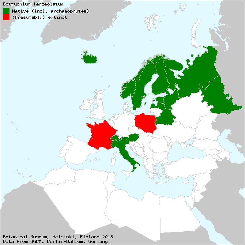 Botryche à feuilles lancéolées (French), Botryche lancéolé (French), Botrichio lanceolato (Italian), Botryche lancéolé (French), Botrychium à feuilles lancéolées (French), Botrychium lancéolé (French), Fliget Månerude (Danish), håndmarinøkkel (Norwegian), Lanzett-Rautenfarn (German), Lanzetttliche Mondraute (German), lensutungljurt (Icelandic), Podejźrzon lancetowaty (Polish), suikeanoidanlukko (Finnish), Süstjas võtmehein (Estonian), topplåsbräken (Swedish), гроздовник ланцестовидный (Russian)[Credits] |