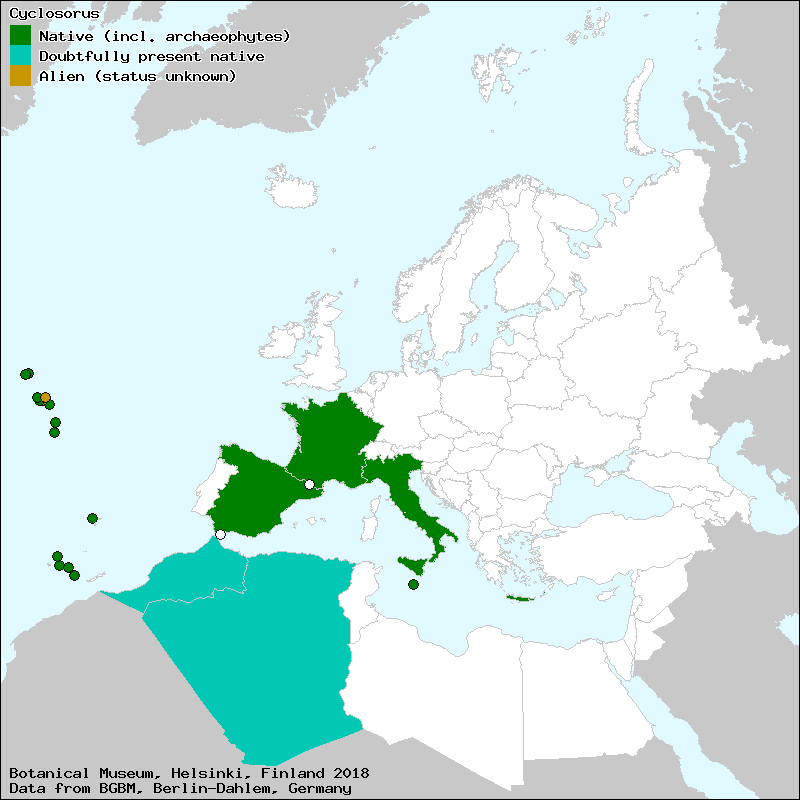 Christenhusz, M. & Raab-Straube, E. von (2013): Polypodiopsida. – In: Euro+Med Plantbase - the information resource for Euro-Mediterranean plant diversity. This work is licensed under a Creative Commons Attribution-ShareAlike 3.0 Unported license (CC-By-SA-3.0 Unported).