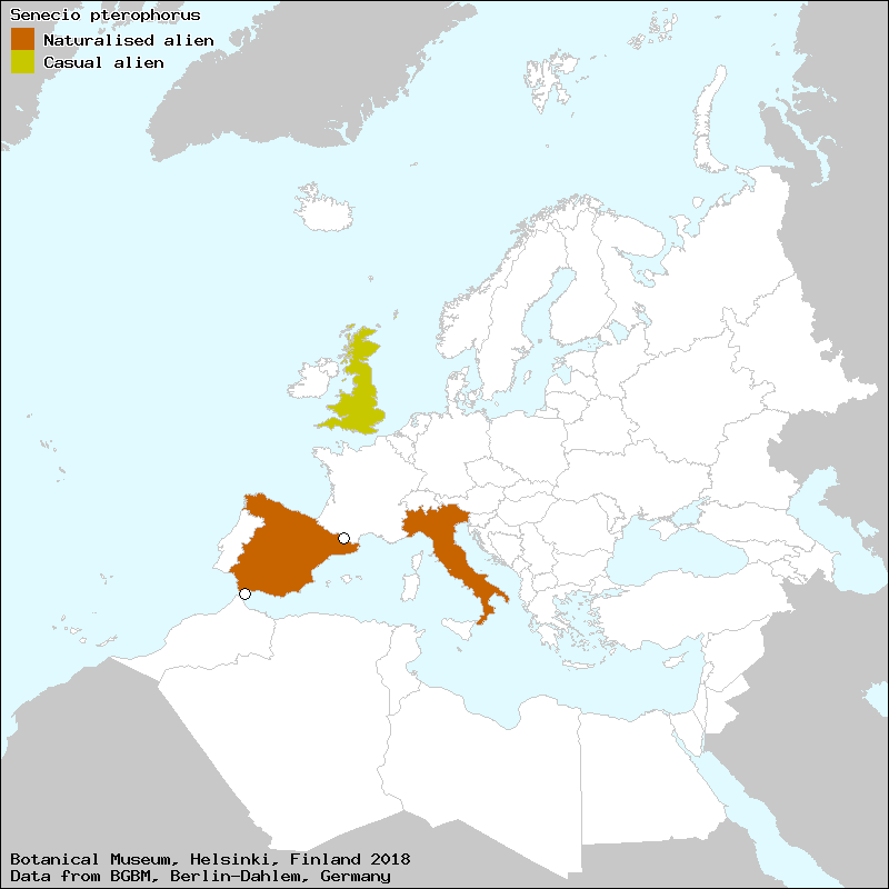 "Senecio grisebachii" sec. Barberis, G., Minuto, L. & Peccenini, S. (1998) - Senecio grisebachii Baker (Compositae), new to the Italian flora - Webbia; raccolta di scritti botanici Florence 52: 201-206.