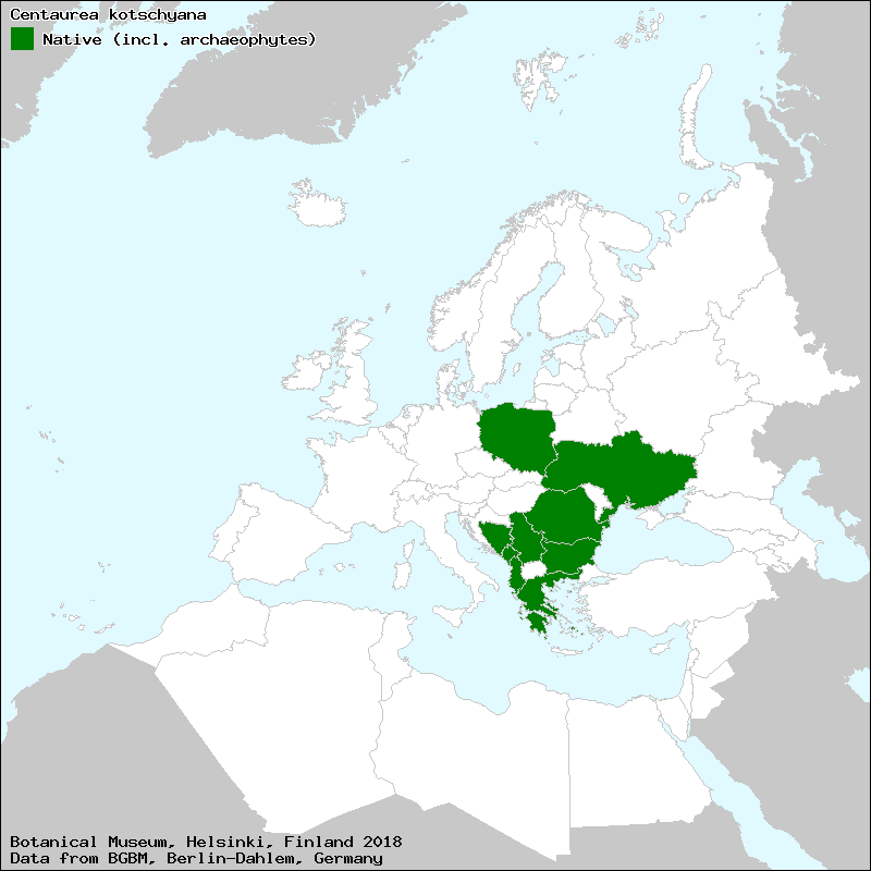 Chaber Kotschyego (Polish), Kokoçel i Koshit (Albanian), Волошка схiднокарпатська (Ukraine), Котчиева метличина (Bulgarian)[Credits] |