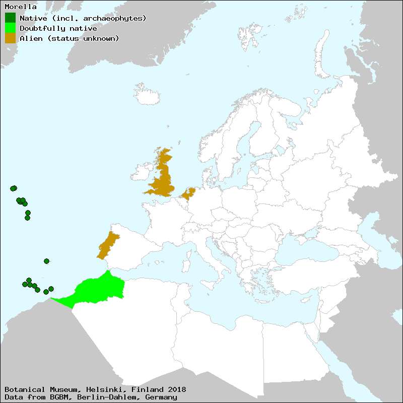 Uotila, P. (2009): Myricaceae. – In: Euro+Med Plantbase - the information resource for Euro-Mediterranean plant diversity. This work is licensed under a Creative Commons Attribution-ShareAlike 3.0 Unported license (CC-By-SA-3.0 Unported).