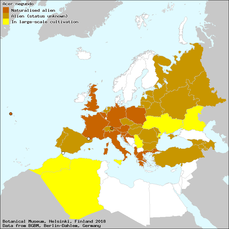 arce (Spanish, Castillian), arce con hojas de fresno (Spanish, Castillian), arce de hojas de fresno (Spanish, Castillian), auró de fulla de freixe (Catalan), bordo-negundo (Portuguese), erable (Catalan), itsas-astigar (Euskera), itsas-axtigar (Euskera), lizar-astigar (Euskera), negundo (Catalan), negundo (Spanish, Castillian), negundo astigar (Euskera), pau-ferro (Portuguese)[Credits] |