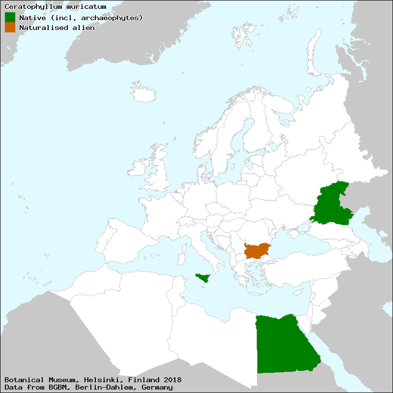 Uotila, P. (2010): Ceratophyllaceae. – In: Euro+Med Plantbase - the information resource for Euro-Mediterranean plant diversity. This work is licensed under a Creative Commons Attribution-ShareAlike 3.0 Unported license (CC-By-SA-3.0 Unported).