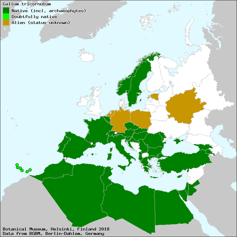 amor de hortelano (Spanish, Castillian), amor del hortelano (Spanish, Castillian), galio de tres flores (Spanish, Castillian), lapa (Spanish, Castillian), lapas (Spanish, Castillian), pegajosa (Spanish, Castillian), pegajosillo (Spanish, Castillian), reboleta (Aragonese), reboleta (High Aragonese), rèvola (Valencian), rèvola de tres fruits (Valencian), Γάλιον το τρικέρατον (Greek)[Credits] |
