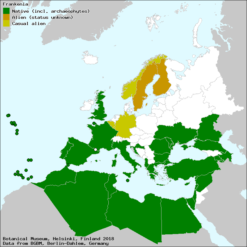 Source: Raab-Straube, E. von (2018): Frankeniaceae. – In: Euro+Med Plantbase - the information resource for Euro-Mediterranean plant diversity.