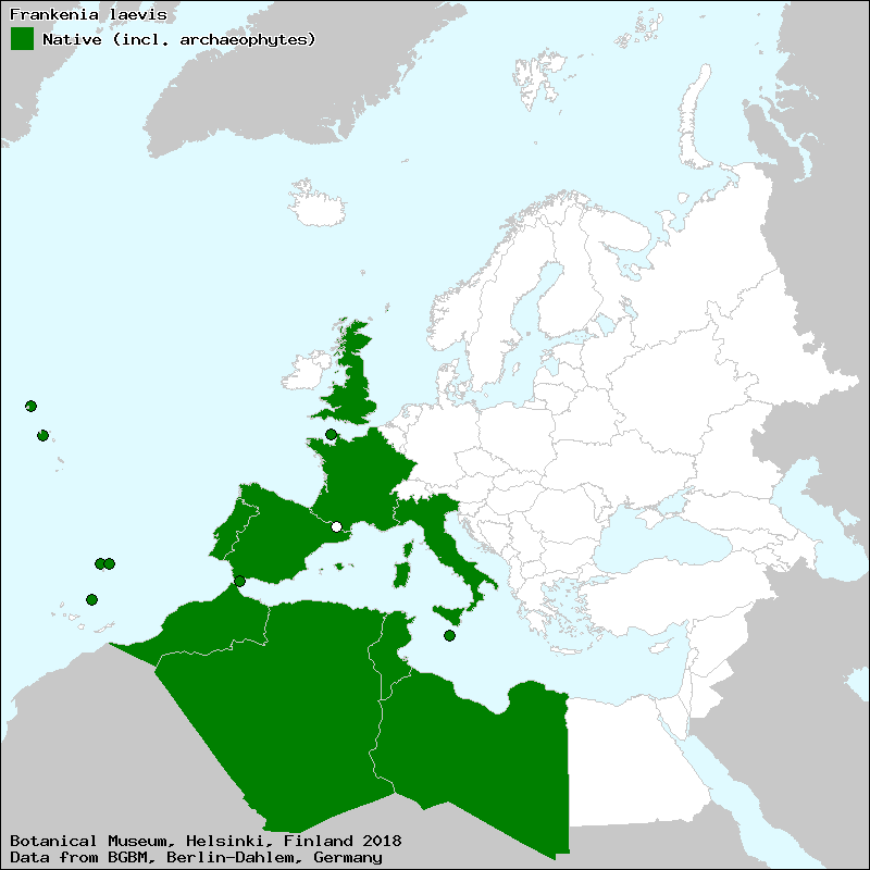 Raab-Straube, E. von (2018): Frankeniaceae. – In: Euro+Med Plantbase - the information resource for Euro-Mediterranean plant diversity. This work is licensed under a Creative Commons Attribution-ShareAlike 3.0 Unported license (CC-By-SA-3.0 Unported).