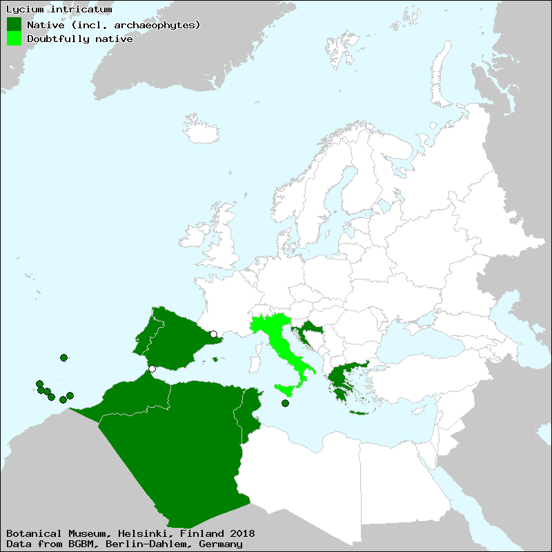 Homotypic synonyms: Lycium europaeum var. intricatum (Boiss.) Kuntze