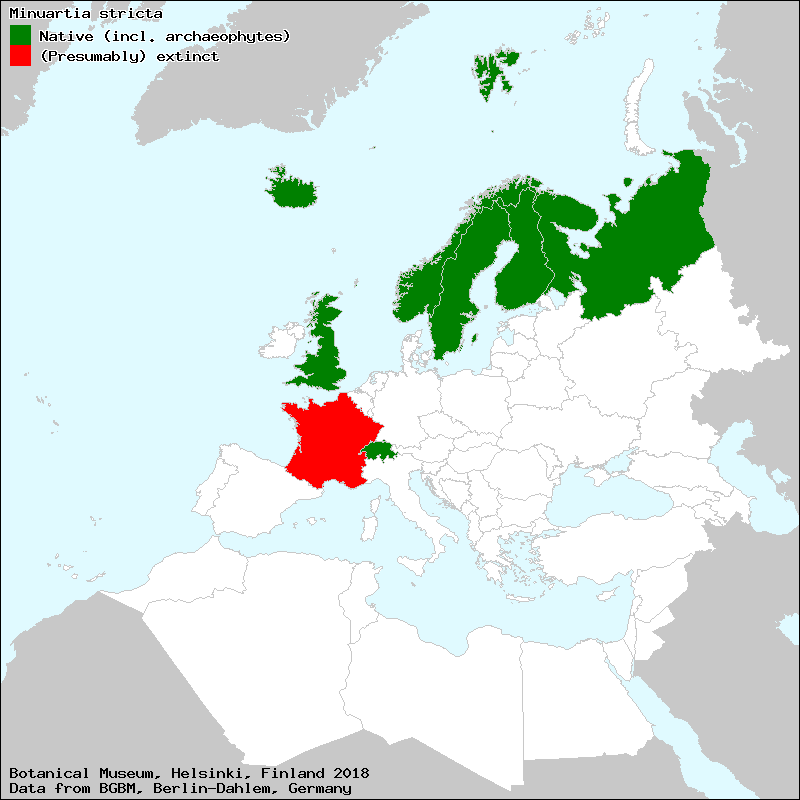 Minuartie dressée (French), Minuartie droite (French), Sabline dressée (French), grannarve (Norwegian), Minuartia rigida (Italian), Minuartie raide (French), móanóra (Icelandic), raknörel (Swedish), Rank Norel (Danish), Steife Miere (German), Teesdale Sandwort (English), tunturinätä (Finnish)[Credits] |