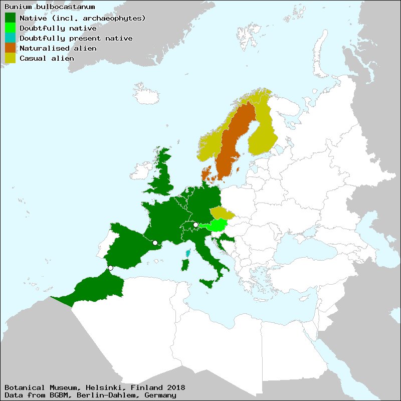 basarbia (Euskera), bas-arbía (Euskera), bulbocastaña (Spanish, Castillian), bulbo-castaña (Spanish, Castillian), bulbocastano (Spanish, Castillian), bunio (Spanish, Castillian), bunio de Montserrat (Portuguese), castaña de tierra (Spanish, Castillian), castanha subterranea menor (Portuguese), castañuela (Spanish, Castillian), castanyola (Catalan), castanyola (Majorcan), castanyola (Valencian), castanyola baleàrica (Catalan), macocla (Spanish, Castillian), macuca (Spanish, Castillian), mariconcola (Spanish, Castillian), matacucas (Spanish, Castillian), nabo castañero (Spanish, Castillian), nabo salvaje (Spanish, Castillian), nucecilla (Spanish, Castillian), seraions (Majorcan)[Credits] |