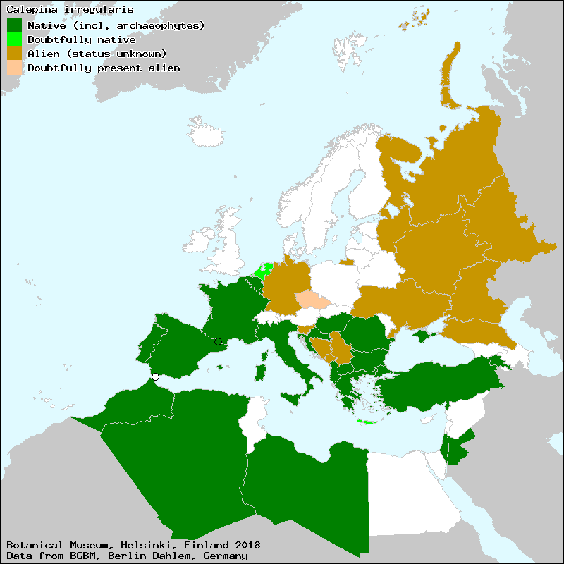 calepina (Catalan), Əyri kalepina (Azerbaijan), Καλεπίνα η Κορβίνειος (Greek), Калепина нерiвномiрна (Ukraine), Калепина неравномерная (Russian), Калепина неравномернная (Russian)[Credits] |