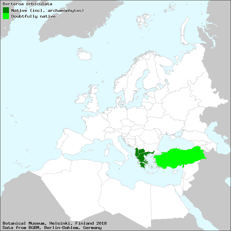 "Berteroa samolifolia" sec. HAYEK, A. - Prodromus florae peninsulae Balcanicae. Dahlem bei Berlin, 1924-1928. Repert. Spec. Nov. Regni Veg. Beih. 30/1-3. 1/1: [I]-[VIII], 1-160. 1924 (1 avril); 1/2: 161-352. 1924 (25 août); 1/3: 353-512. 1925 (15 fév.); 1/4: 513-672. 1925 (15 déc.); 1/5-6: 673-960. 1926 (15 oct.); 1/7-8: 961-1193. 1927 (30 juin); 2/1: 1-96. 1928 (24 nov.). |