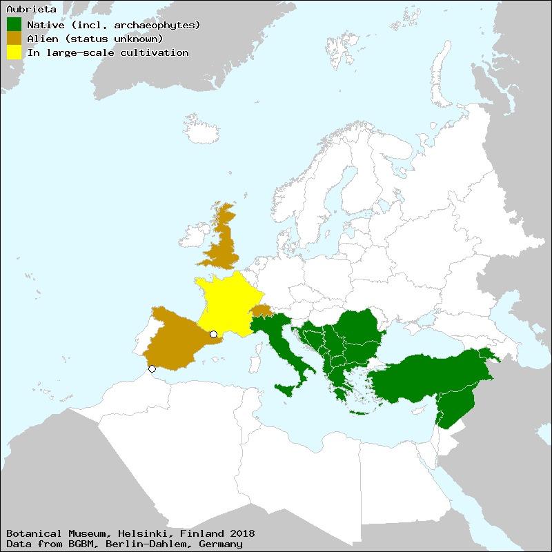 Αουβριετία (Greek), Аубриета (Bulgarian)[Credits] |