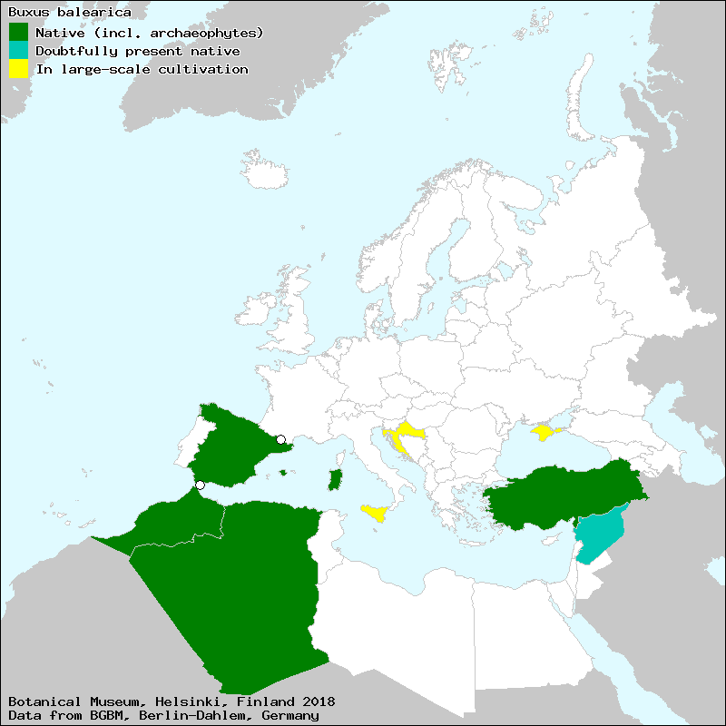 bejigar (Spanish, Castillian), boix (Catalan), boix (Majorcan), boix baleàric (Catalan), boj (Spanish, Castillian), boj balear (Spanish, Castillian), boj de Baleares (Spanish, Castillian), boj de las Baleares (Spanish, Castillian), boj de Mahón (Spanish, Castillian), boj mallorquín (Spanish, Castillian), boje (Spanish, Castillian), box (Catalan), box (Spanish, Castillian), box de las Baleares (Spanish, Castillian), buxo (Galician), buxo (Portuguese), ezpel hostandi (Euskera)[Credits] |
