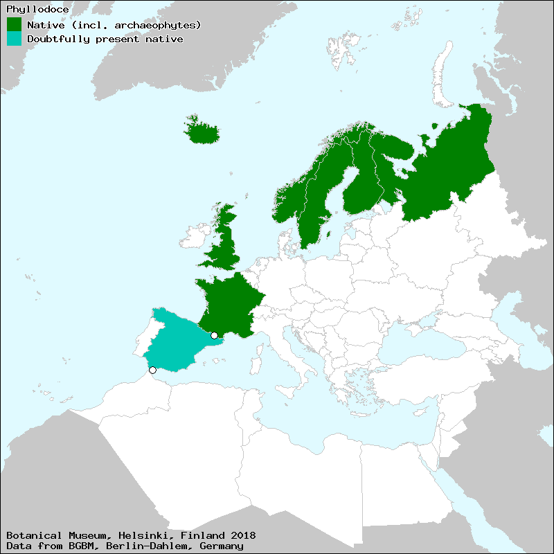 Valdés, B. (2009+): Phyllodoce. – In: Euro+Med Plantbase - the information resource for Euro-Mediterranean plant diversity This work is licensed under a Creative Commons Attribution-ShareAlike 3.0 Unported license (CC-By-SA-3.0 Unported).