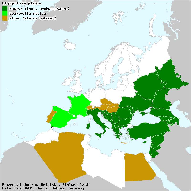 Comments: Cultivated as a source of liquorice, Kurgan Province: Glyadenskoe village - K.Fedotova, 1980, Sometimes G. glandulifera & G. hirsuta are regarded as good separate species