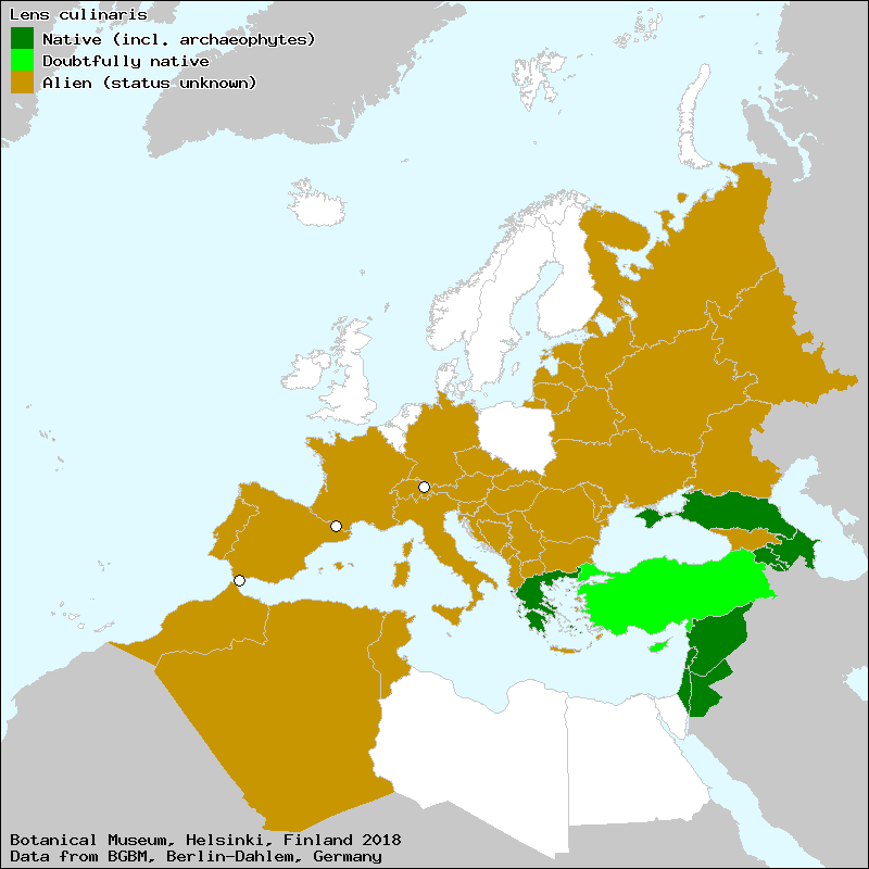 Lectotype designated by Westphal(1974: 109)., Native to the Middle East., Originated from Southern Europe, this species is cultivated in Africa & Asia., Widely cultivated for its seeds in regions of low rainfall. |