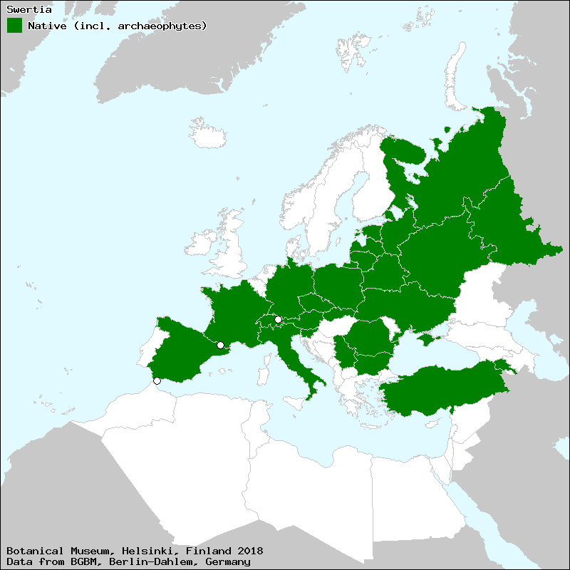 Source: Marhold, K. (2011): Gentianaceae. – In: Euro+Med Plantbase - the information resource for Euro-Mediterranean plant diversity.