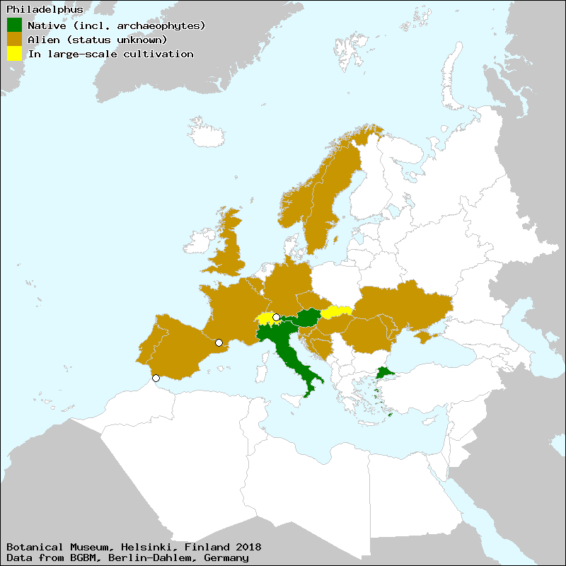 Source: Marhold, K. (2011): Hydrangeaceae. – In: Euro+Med Plantbase - the information resource for Euro-Mediterranean plant diversity.