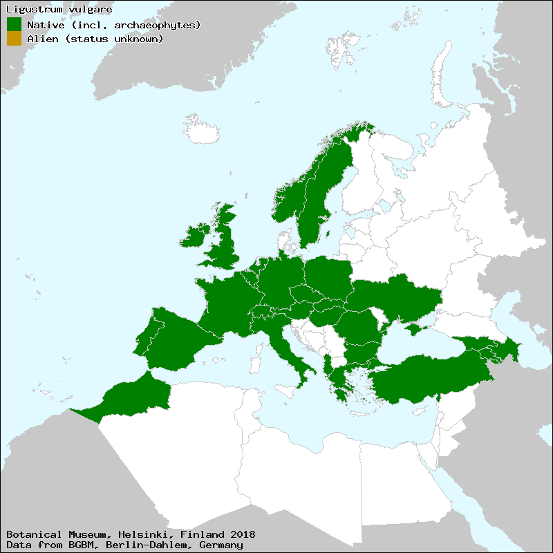 Common names: abreguet (Majorcan), abusto (Spanish, Castillian), albena (Catalan), albena (Spanish, Castillian), albeña (Spanish, Castillian), albenga (Catalan), alenga (Catalan), alenya (Catalan), alfaneira (Galician), alfaneira (Portuguese), alfaneiro (Galician), alfaneiro (Portuguese), alfeheiro (Portuguese), alfena (Portuguese), alfena (Spanish, Castillian), alfeña (Spanish, Castillian), alfeneiro (Galician), alfeneiro (Portuguese), alfenheiro (Galician), alfenheiro (Portuguese), alfeninheiro (Portuguese), alheña (Spanish, Castillian), alhenya (Catalan), aligustre (Aragonese), aligustre (Catalan), aligustre (Spanish, Castillian), alquena (Catalan), árbol de alheña (Spanish, Castillian), árbol del paraiso (Spanish, Castillian), arbustu arrunt (Euskera), arbustu arrunta (Euskera), arbustu-arrunta (Euskera), azahar silvestre (Spanish, Castillian), belchalea (Euskera), belchaliá (Majorcan), beltzale (Euskera), biñorría (Euskera), biñorriá (Majorcan), boje (Spanish, Castillian), capicuerno (Spanish, Castillian), cascafilgueiro (Portuguese), cornampuya (Asturian), cornapú (Asturian), cornapuya (Asturian), cornapuz (Spanish, Castillian), dentisco (Aragonese), dentisco (High Aragonese), fiadeira (Galician), fiafeira (Galician), fiafeira (Portuguese), fiaza (Galician), filseira (Galician), filseira (Portuguese), fusera (Galician), galiña gorda (Galician), herba dels fics (Catalan), legustio (Spanish, Castillian), legustre (Aragonese), legustre (High Aragonese), ligustro (Galician), ligustro (Portuguese), ligustro (Spanish, Castillian), ligustro germánico (Spanish, Castillian), llampuga blanca (Catalan), malamdurillo (Spanish, Castillian), malmadurillo (Spanish, Castillian), malmarudillo (Spanish, Castillian), matahombres (Spanish, Castillian), mata-hombres (Spanish, Castillian), olivastro (Spanish, Castillian), olivella (Catalan), olivella (Majorcan), olivereta (Catalan), olivereta (Valencian), palillo duro (Spanish, Castillian), pisagang (Aragonese), pisasang (Catalan), pisasang (High Aragonese), pisasang (Valencian), rotabech (Majorcan), sanguine(t) (Catalan), sanguine(t) (Valencian), sanguñera (Spanish, Castillian), sanjuanín (Asturian), sant´Antoninhas (Portuguese), santantoniñas (Galician), santantoninhas (Galician), santantoninhas (Portuguese), sebe de jardín (Spanish, Castillian), sosacusiá (Majorcan), sosakusi (Euskera), sosakusia (Euskera), tilseira (Galician), tousera (Galician), troana (Catalan), yerba de las andaderas (High Aragonese), zuhain madarikatu (Euskera)[Credits]