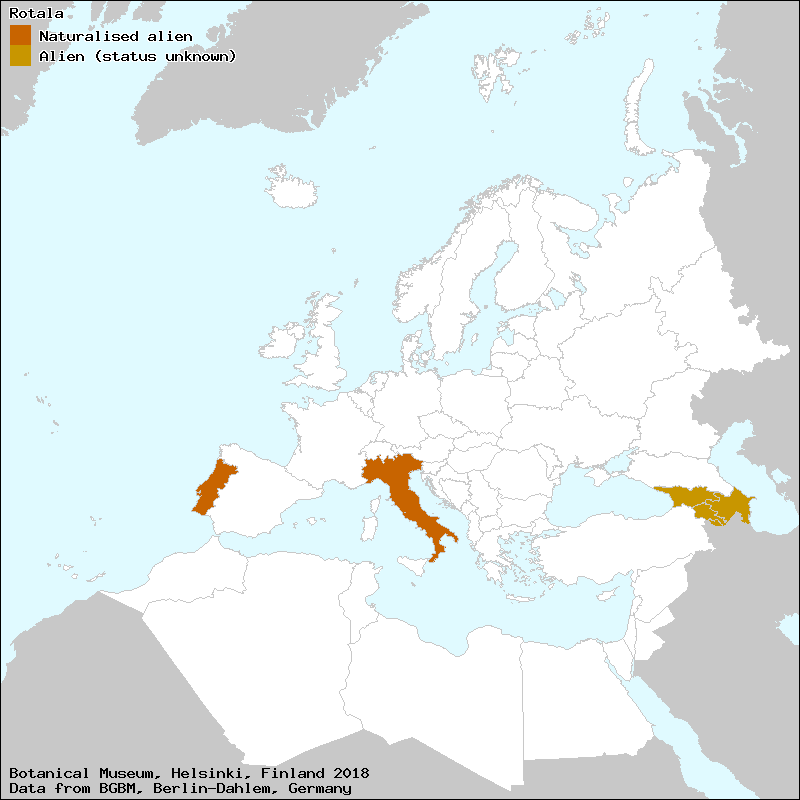 Valdés, B. (2012+): Rotala. – In: Euro+Med Plantbase - the information resource for Euro-Mediterranean plant diversity. This work is licensed under a Creative Commons Attribution-ShareAlike 3.0 Unported license (CC-By-SA-3.0 Unported).