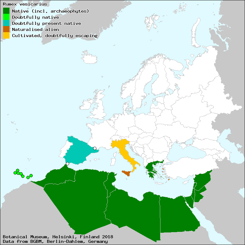Heterotypic synonyms: Rumex vesicarius var. rhodophysa Ball