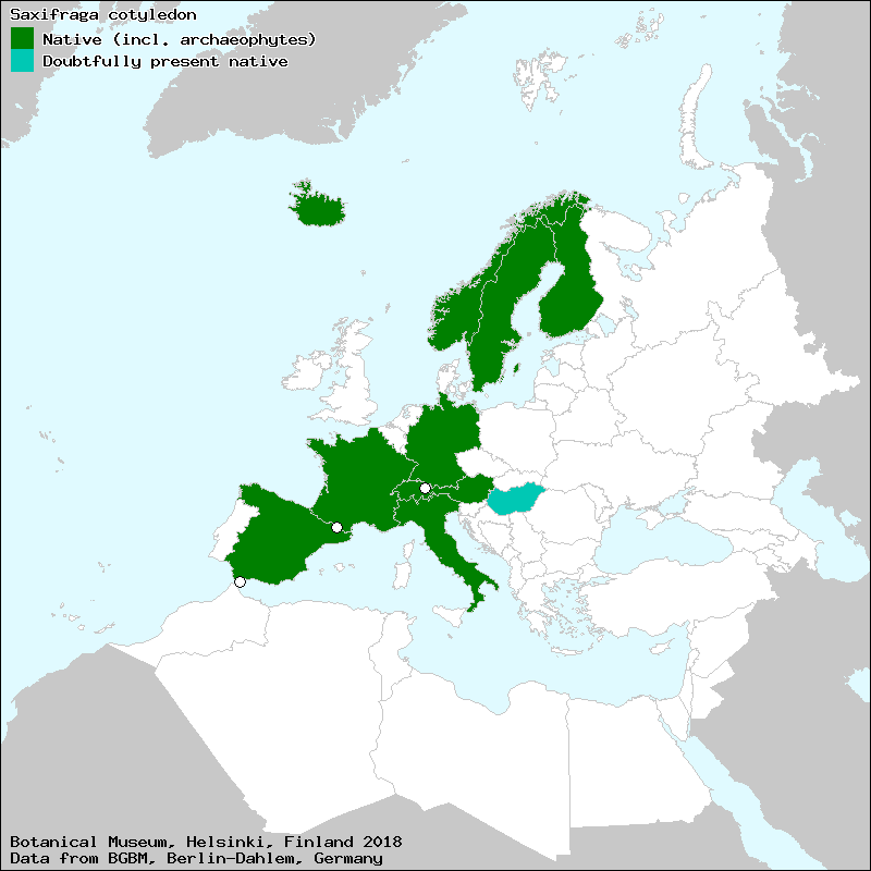 Marhold, K. (2011): Saxifragaceae. – In: Euro+Med Plantbase - the information resource for Euro-Mediterranean plant diversity. This work is licensed under a Creative Commons Attribution-ShareAlike 3.0 Unported license (CC-By-SA-3.0 Unported).