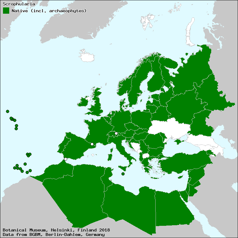 Marhold, K. (2011+): Scrophularia. – In: Euro+Med Plantbase - the information resource for Euro-Mediterranean plant diversity. This work is licensed under a Creative Commons Attribution-ShareAlike 3.0 Unported license (CC-By-SA-3.0 Unported).