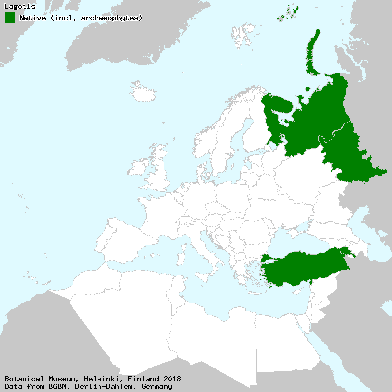 Marhold, K. (2011+): Lagotis. – In: Euro+Med Plantbase - the information resource for Euro-Mediterranean plant diversity. This work is licensed under a Creative Commons Attribution-ShareAlike 3.0 Unported license (CC-By-SA-3.0 Unported).